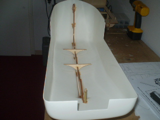 Ich habe auch mal wieder ein bisschen Zeit in mein Boot gesteckt. Lief bis jetzt auch alles sehr glatt.Zwar ein Problem mit der Position des Akkus,aber dank der Hilfe von Normann haben wir das schnell gelöst. Jetzt kann ich unbeschwerd weiter machen weil die Position des Akkus wichtig für den weiteren Verlauf war. Deshalb zeigen die nachfolgenden Fotos das Boot ohne Akkus.