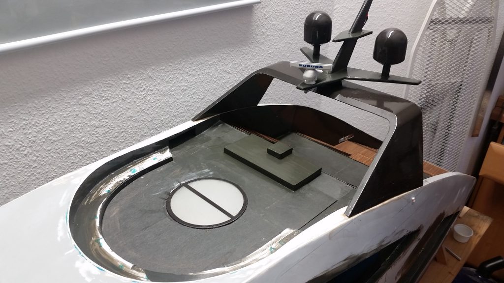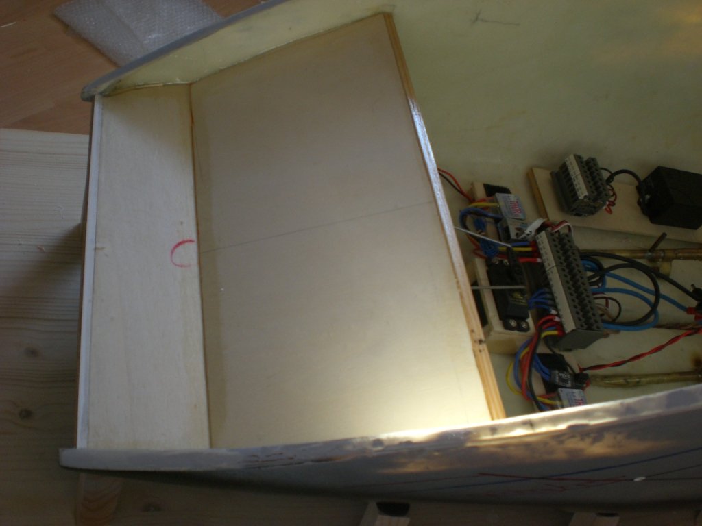 Achtern BB habe ich noch eine Klappe für den Jet-Ski eingebaut. Sie ist beleuchtet und per Servo zu öffnen.