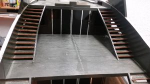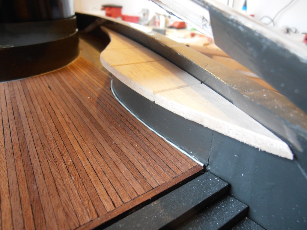 Der Bugwulst und die ersten Treppen sind fertig (bis auf den Mahagonibelag).