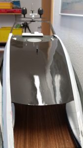 Das Querstralruder ist drin. Die drei Steckteile habe ich mit Aceton verklebt.