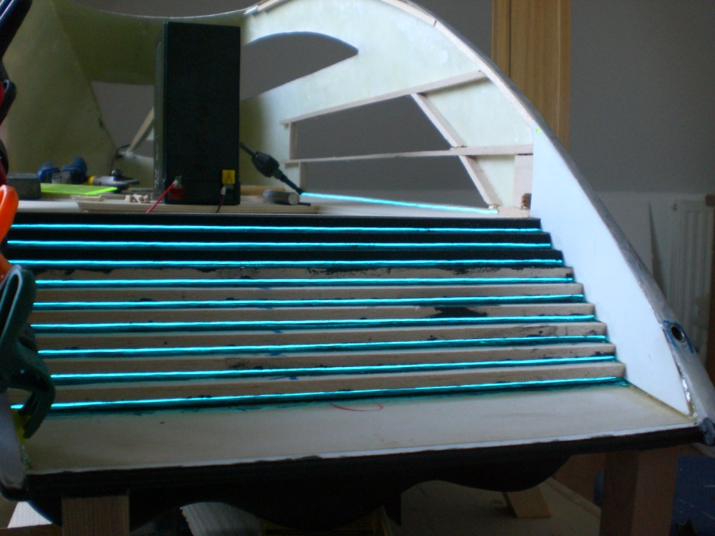 Beleuchtung (Leuchtkabel) für das vordere Deck ist gerade in Arbeit. Unten ist das Original zu sehen.