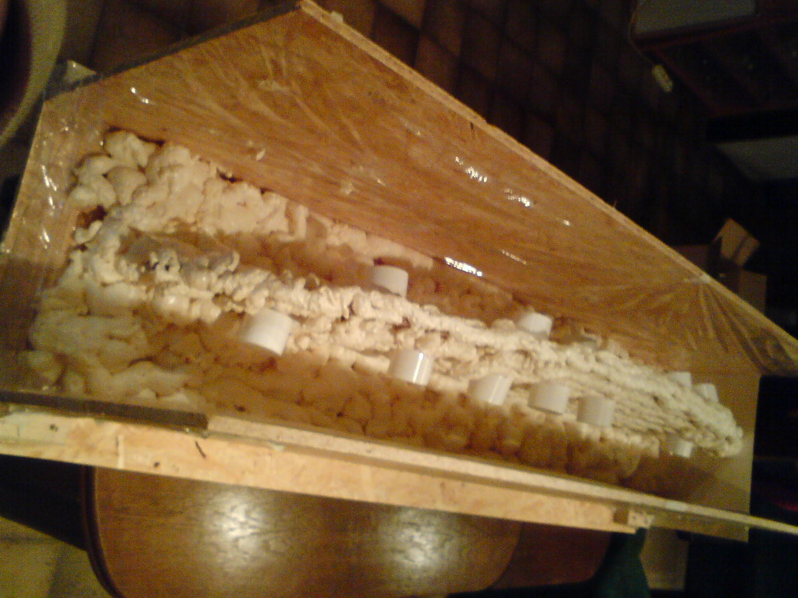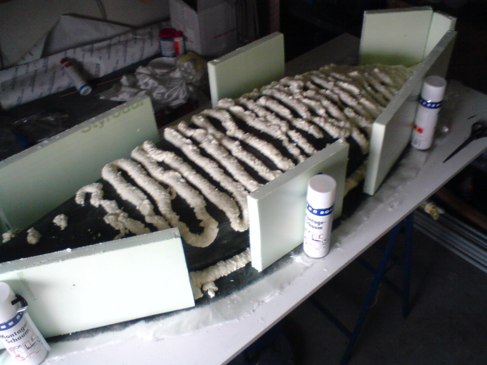 Das Gebilde habe ich dann noch mit PU-Schaum eingesprüht um aussreichend Stabilität zu erreichen (Bild 3 unten).