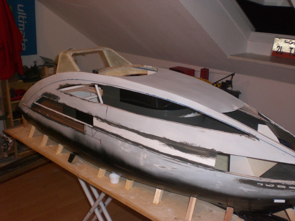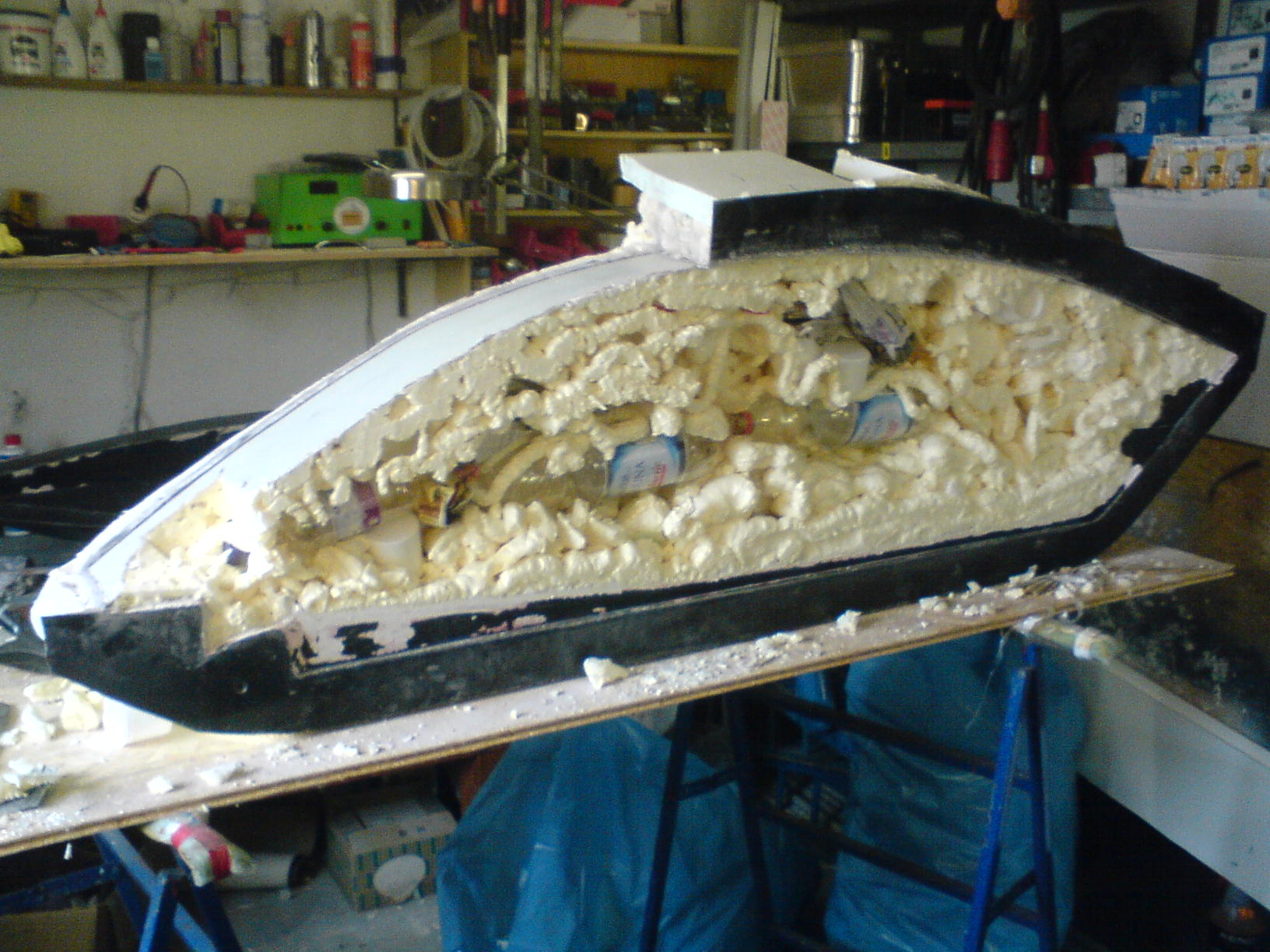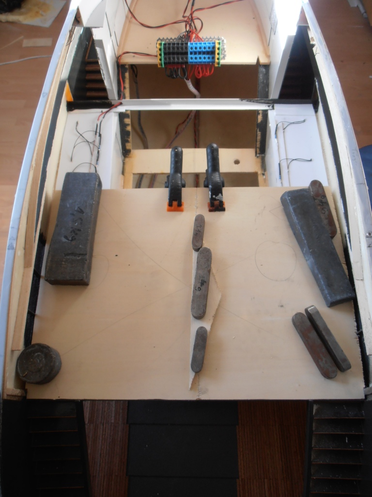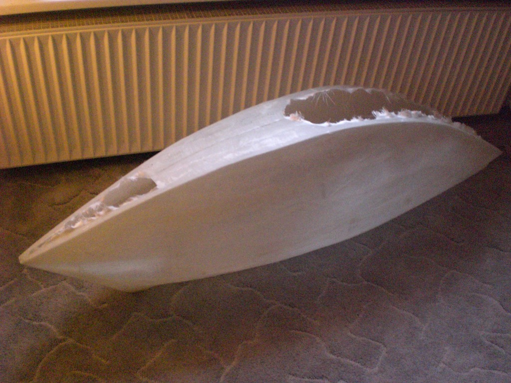 Mit dem mislungenen Rumpf (Bild 2&3 unten) konnte ich aber schon mal die Verdrängung bestimmen (20Kg).