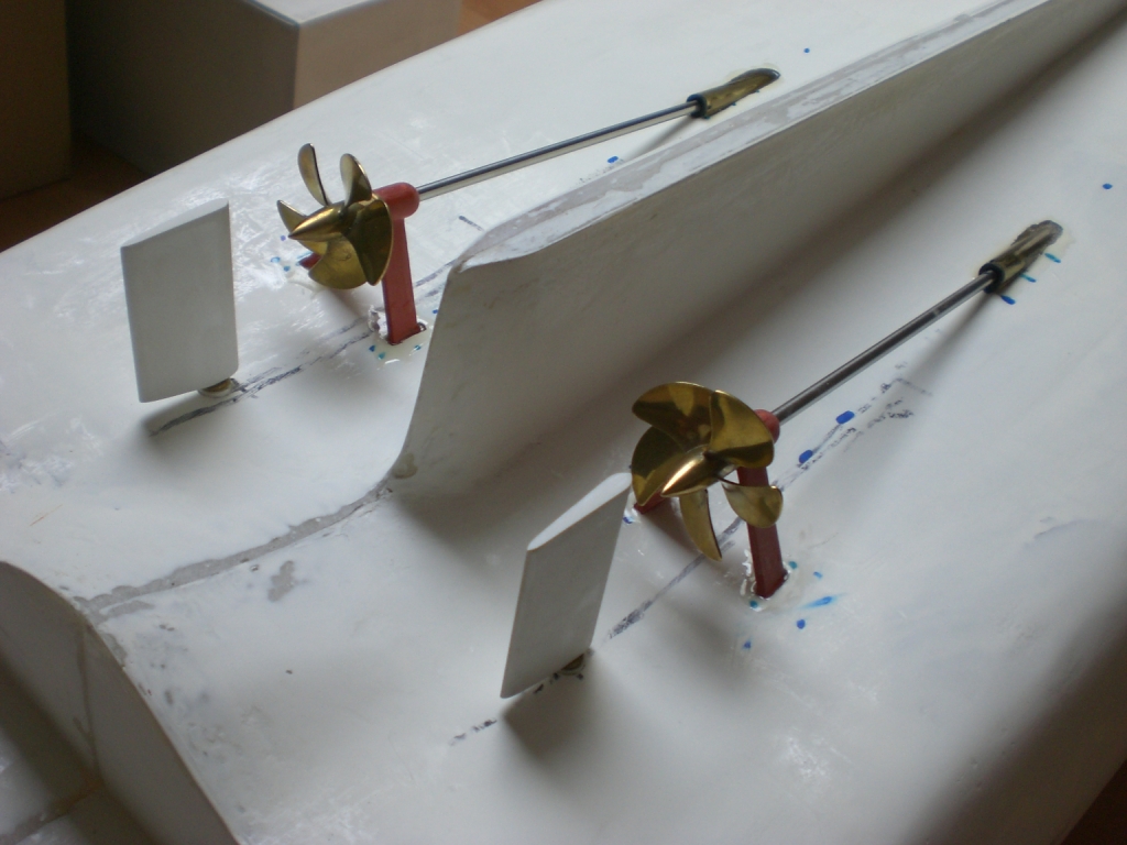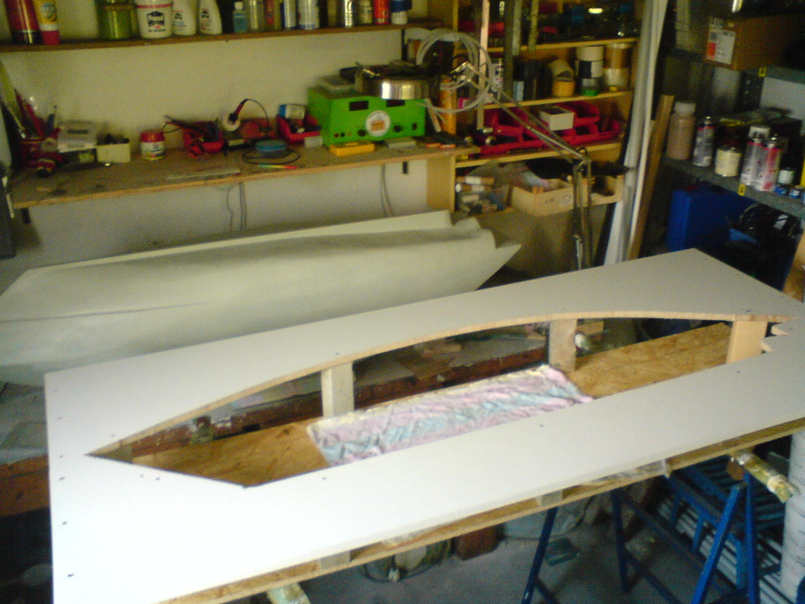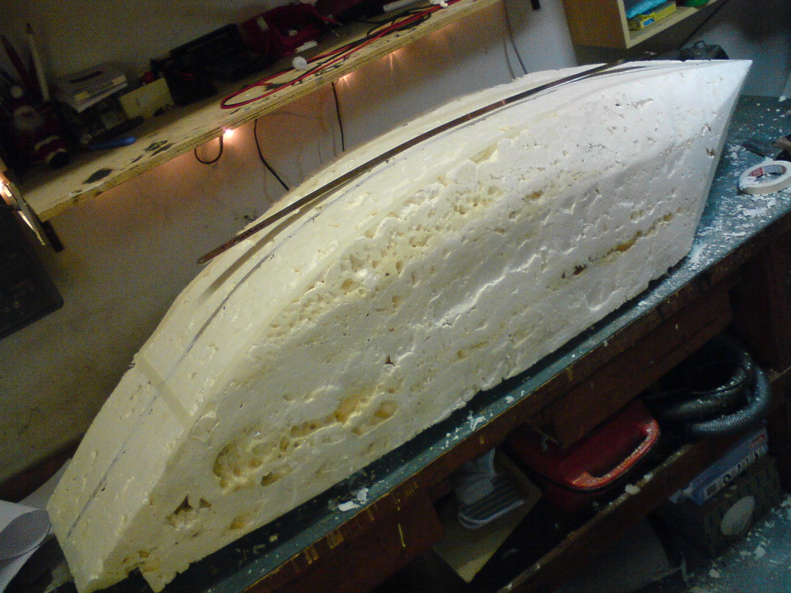 Mit dem mislungenen Rumpf (Bild 2&3 unten) konnte ich aber schon mal die Verdrängung bestimmen (20Kg).