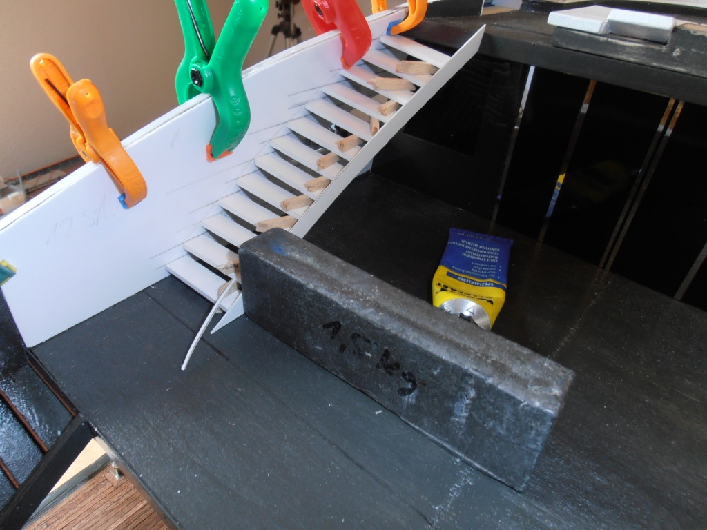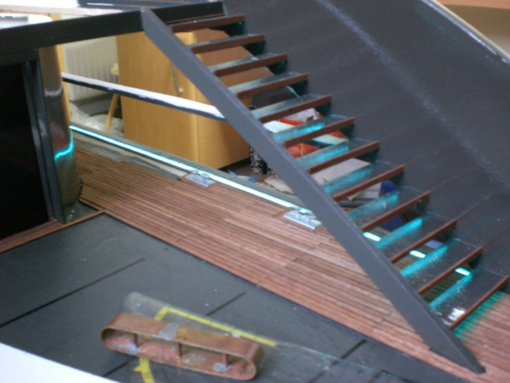 Nachdem ich das dritte Deck fertig habe baue die zwei beleuchteten Treppen ein.