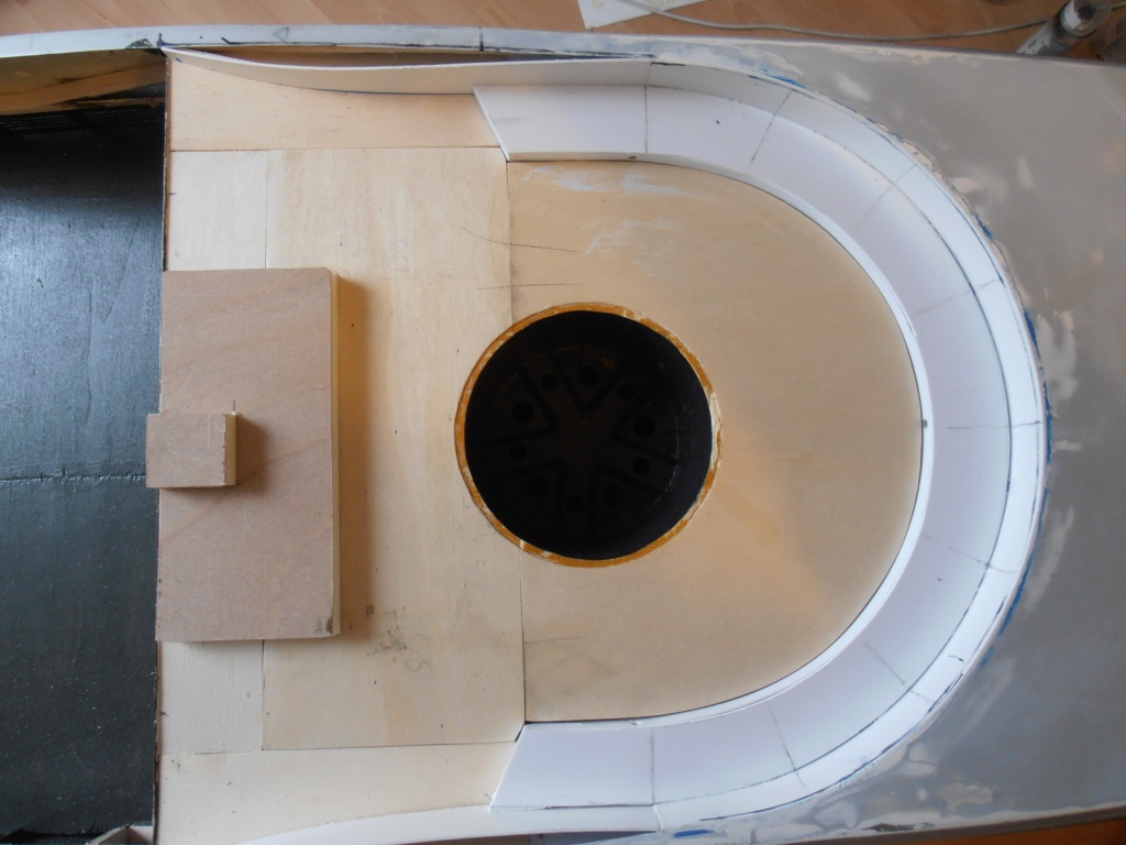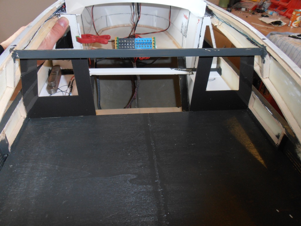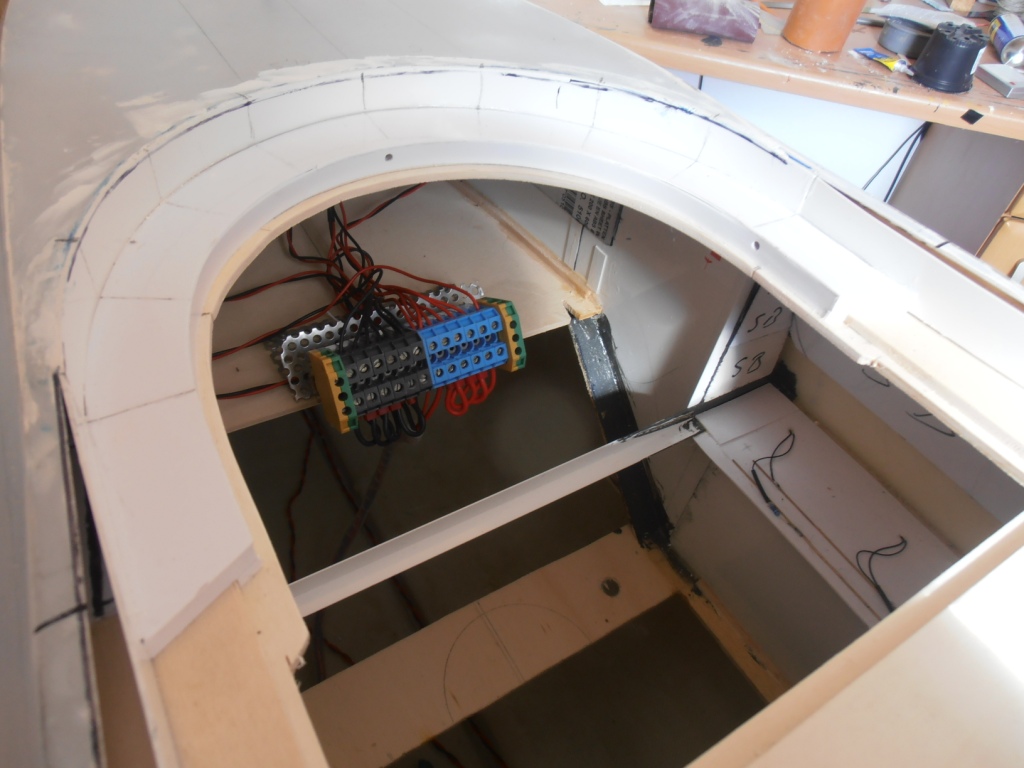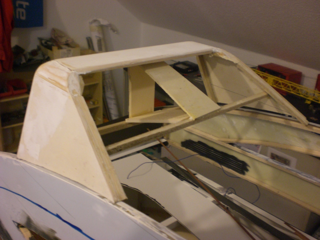 Der Boden ist herausnehmbar als Zugang zu Akku und Motoren. In der Mitte entsteht noch ein von innen beleuchtetes Oberlicht mit Milchglasabdeckung.