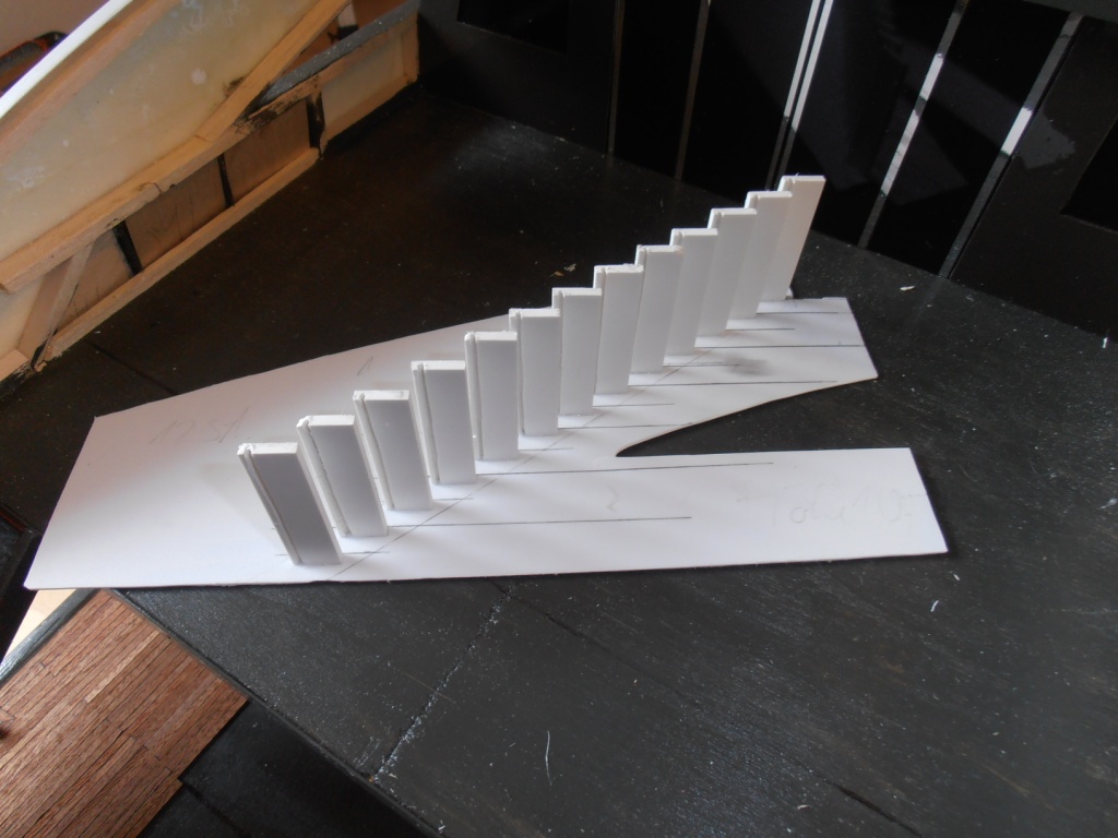 Da ich wie immer an allen Ecken gleichzeitig arbeite, habe ich die Treppen und Seitenwände für das zweite Deck angefangen.