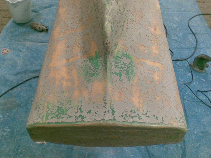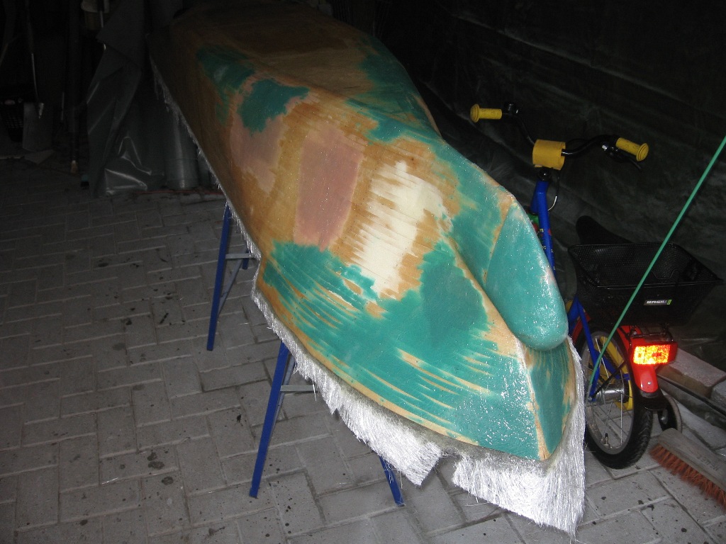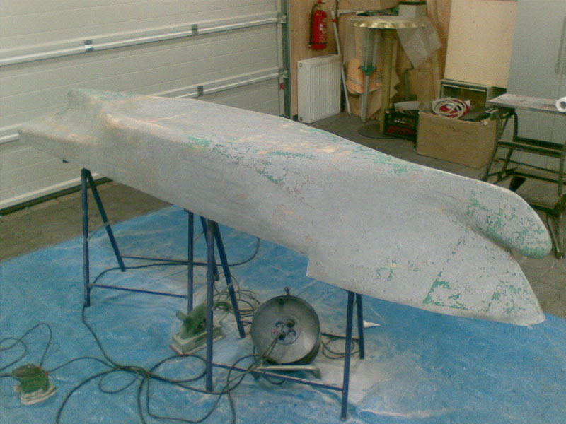 Nach ca. 3 Stunden schleifen hatten wir den Rumpf dann in dem Zustand wo man mit dem Spachteln beginnen kann.