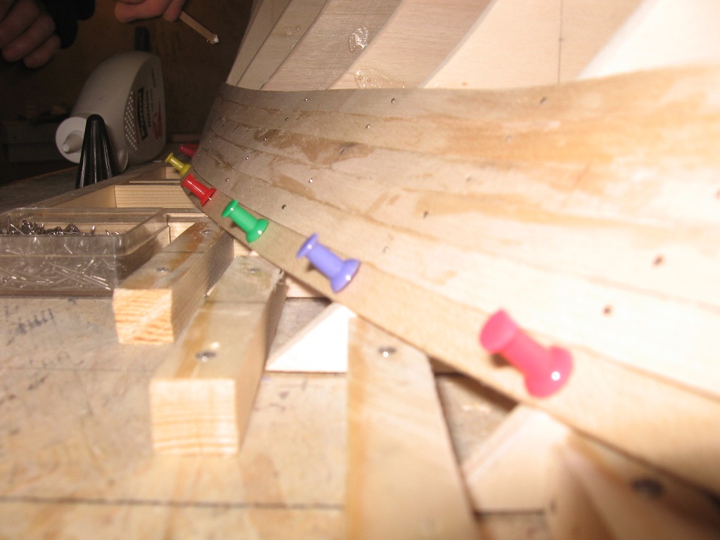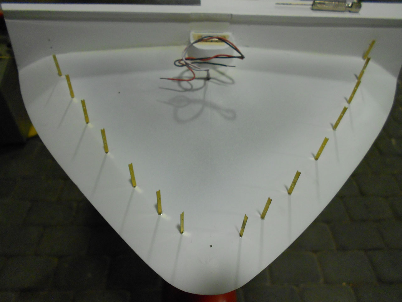 Jetzt musste es genau werden. Wir haben den kompletten Spantenriss ausgerichtet und alles miteinander verklebt. Kabelbinder sind eine super Erfindung.