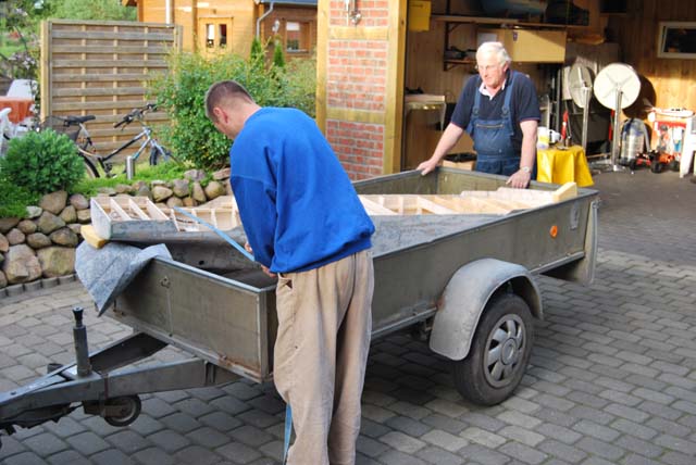 Mit viel Holz unter den Armen ging es wieder in die Werft.