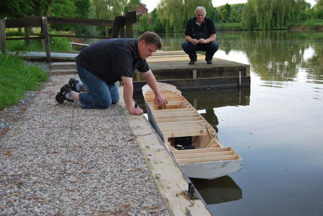 Die Kraft die das Modell bei Fahrt vorraus entwickelte reichte aus, und Gerd und Normann fast in den See zu ziehen als sie versuchten den „Kleinen“ zu stoppen.