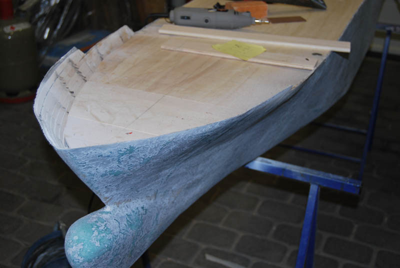 Tja, wie gesagt sollte. Doch wir fanden es dann doch besser erst einmal das Deck einzupassen um dieses dann auch gleich mit zu verspachteln.