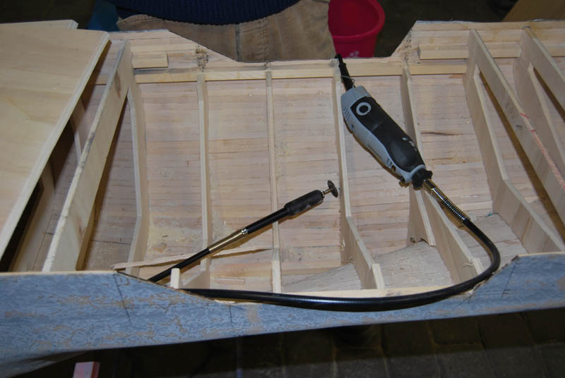 Mit dem kleinen Fräskegel knatterte Normann nun wieder Löcher in den Rumpf. Doch erstaunlicher Weise passten auch diese Löcher wieder wie die Faust aufs Auge.