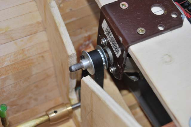 Den Motor haben auf einer variablen Halterung montiert. Sollte also mal unser Riemen locker werden können wir den kompletten Antrieb anheben.