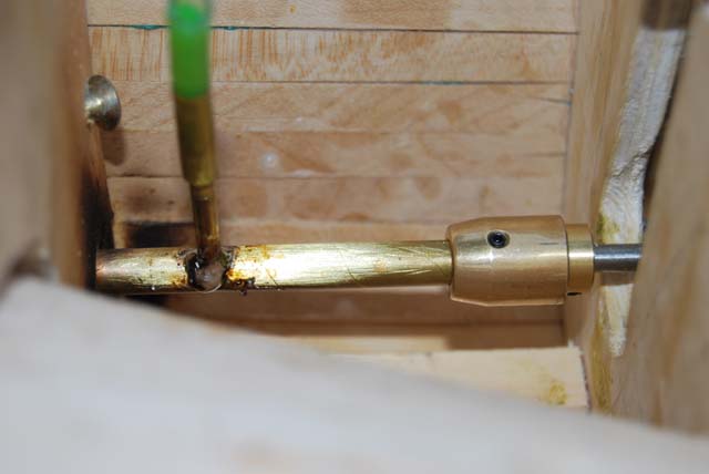 Doch bevor das losgeht haben wir noch die glorreiche Aufgabe uns den Antrieb vorzunehmen und einzupassen. Denn die Welle soll ja auch mit eingeklebt und verspachtelt werden.