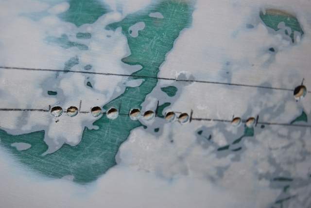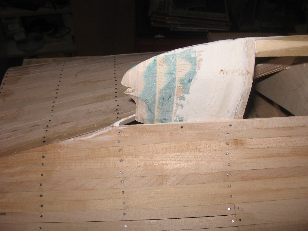 Es waren eine Menge Löcher im Bug, die wir im Vorwege bohren und feilen mussten bevor wir das Vordeck aufkleben bzw. anpassen konnten.