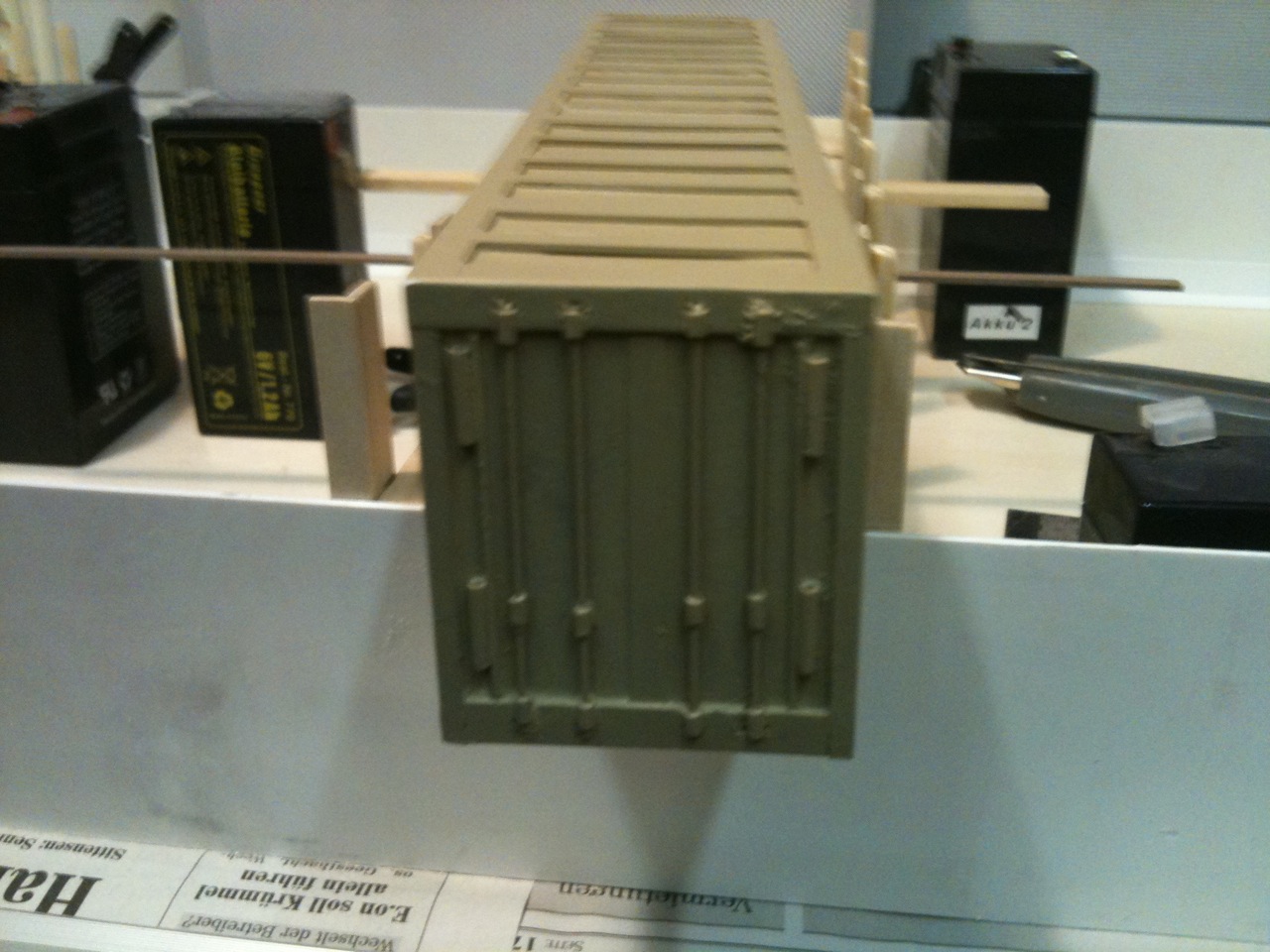 Wenn jetzt die Farbe schön gedeckt hat werden wir uns an die Containerhalter in der Mitte kümmern.