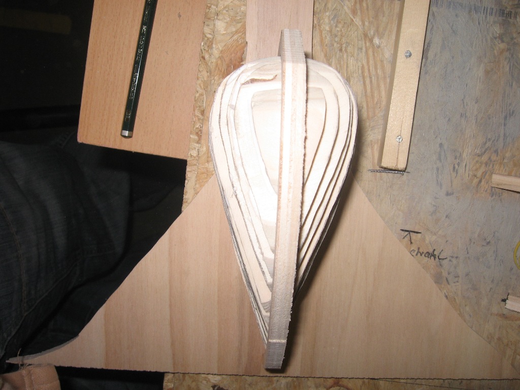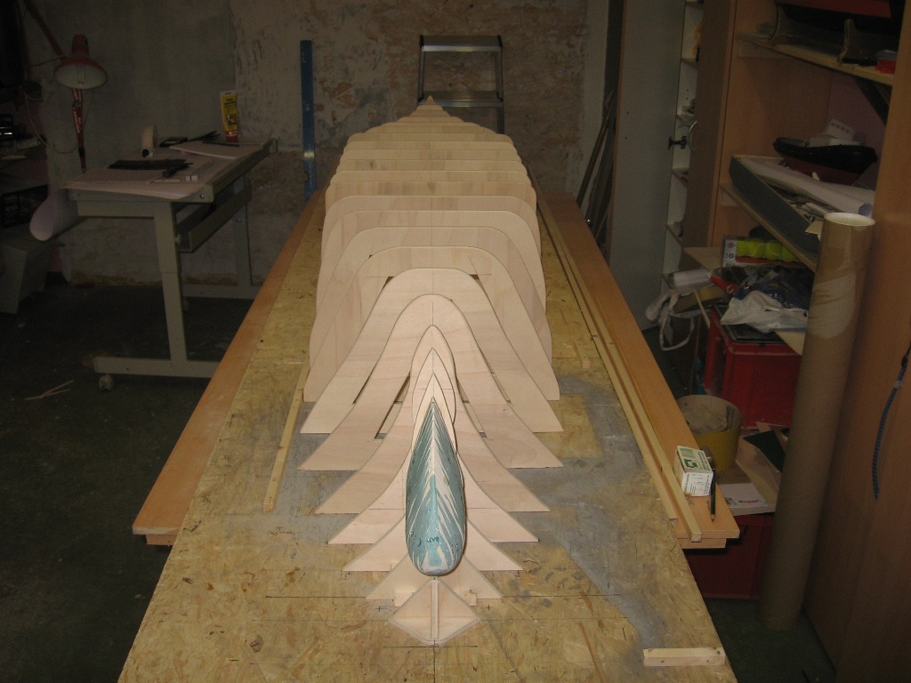 Heute haben wie die Nase fertig geschliffen und angepasst. Die ersten Spanten sind auf Maß geschliffen und ausgeschnitten.